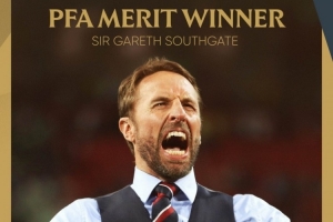 PFA社媒晒出海报,确认前英格兰主帅索斯盖特荣获2025年PFA卓越贡献奖,他将在今晚的颁奖典礼中因对英格兰足球的杰出贡献而受到表彰。